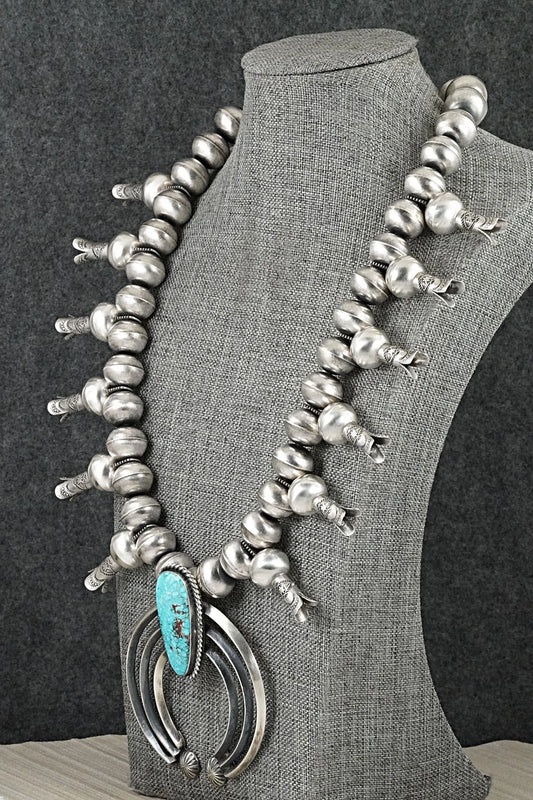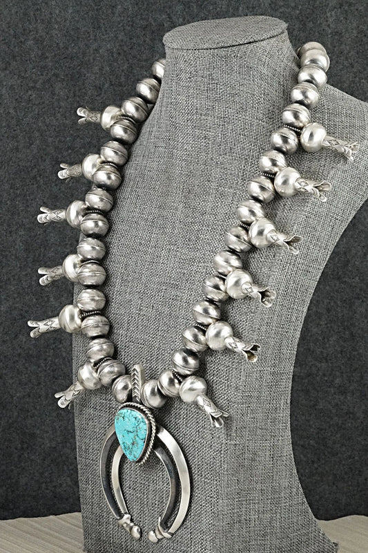 Turquoise & Sterling Silver Squash Blossom Necklace - Chris Hale