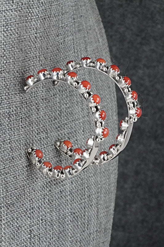 Coral and Sterling Silver Earrings - Gaynell Parker