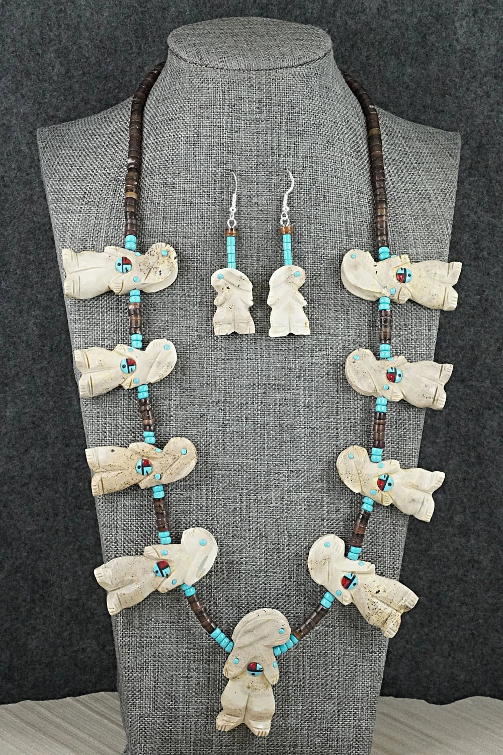 Turquoise & Sterling Silver Squash Blossom Necklace Set - Gerald Etsate