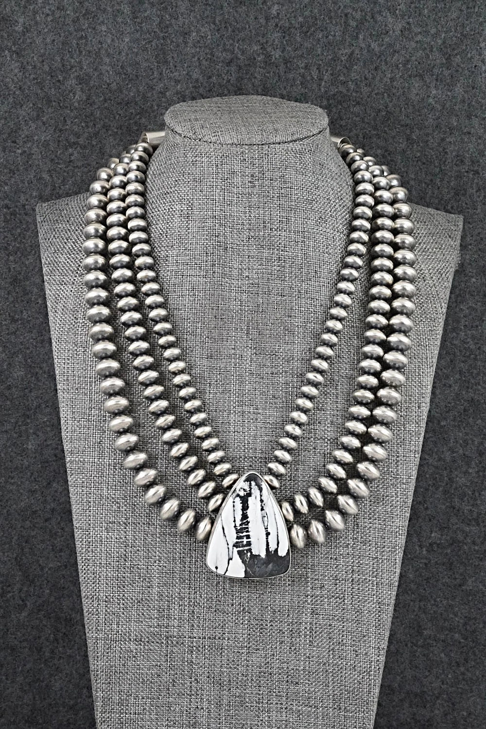 Sterling Silver Navajo Pearl Necklace & Earrings Set - Angeline Miller