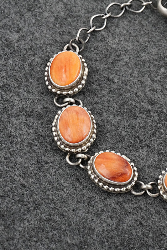 Spiny Oyster & Sterling Silver Link Bracelet - Kathleen Livingston