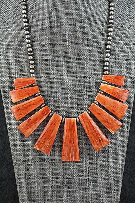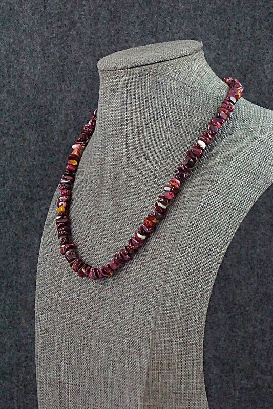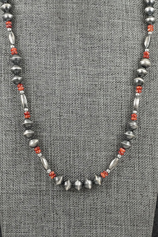 Spiny Oyster & Sterling Silver Necklace 17" - Doreen Jake