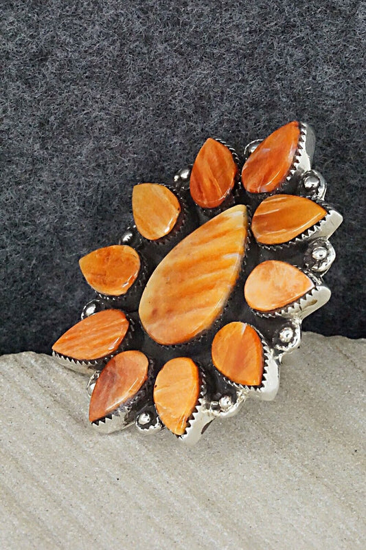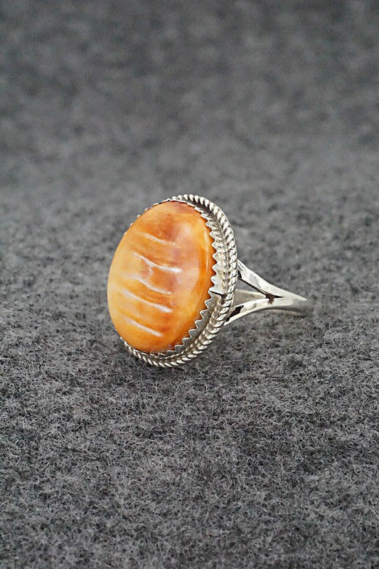 Spiny Oyster & Sterling Silver Ring - Julia Etsitty - Size 8
