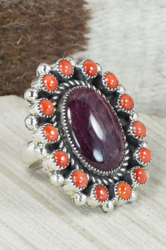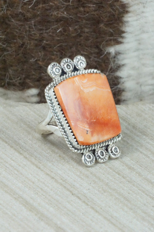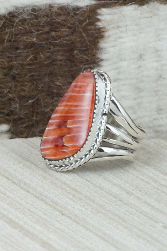 Spiny Oyster & Sterling Silver Ring - Roberta Begay - Size 8