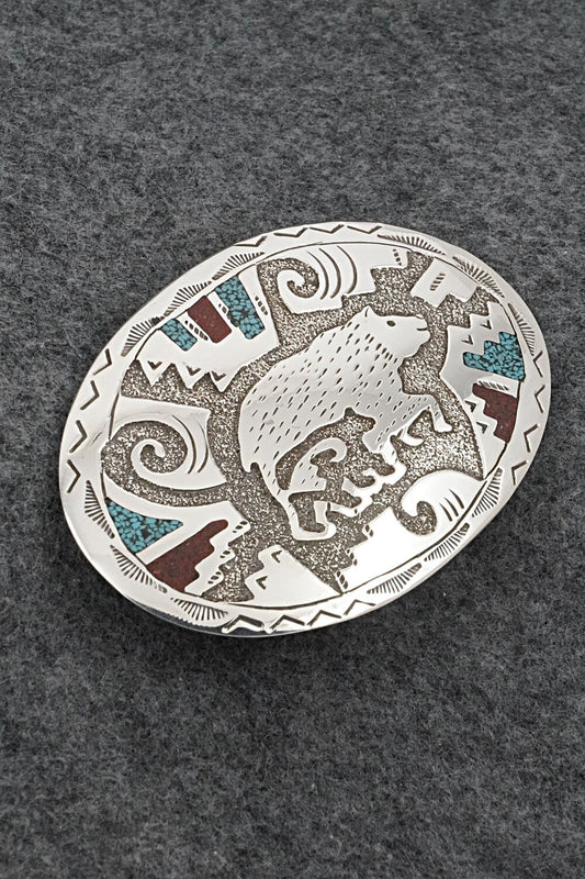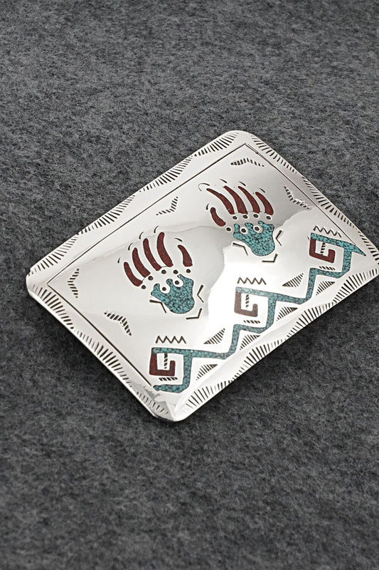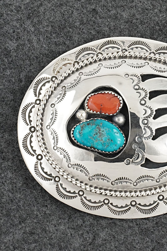 Turquoise, Coral & Sterling Silver Belt Buckle - Wilbert Muskett Sr.