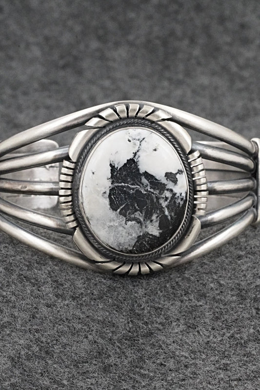 White Buffalo & Sterling Silver Bracelet - Mark Yazzie