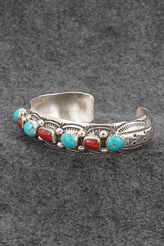 Turquoise, Coral & Sterling Silver Bracelet - Grace Silver