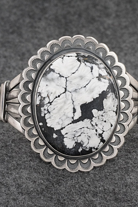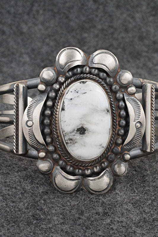 White Buffalo & Sterling Silver Bracelet - Leslie Nez