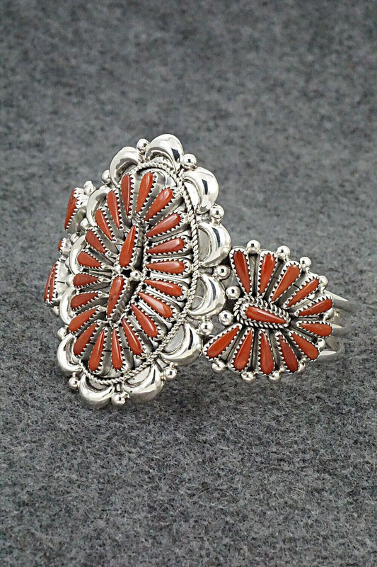 Turquoise, Coral & Sterling Silver Bracelet - Lyolita Tsattie