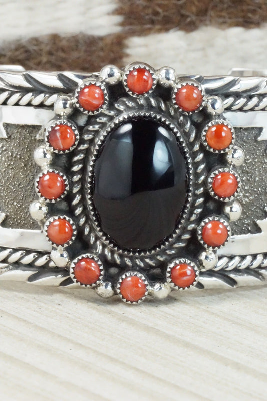 Onyx, Spiny Oyster & Sterling Silver Bracelet - Sandra Parkett