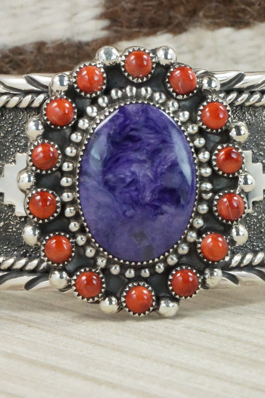 Charoite, Spiny Oyster & Sterling Silver Bracelet - Sandra Parkett