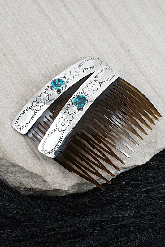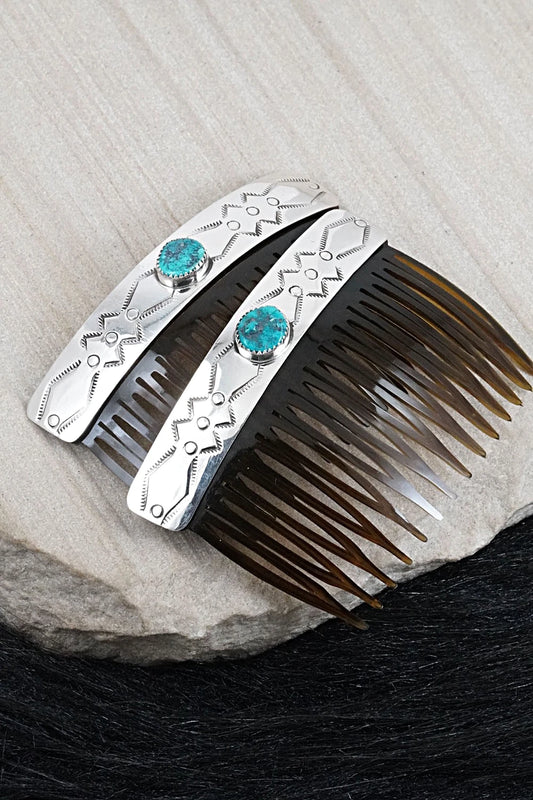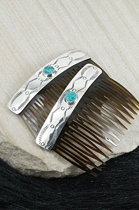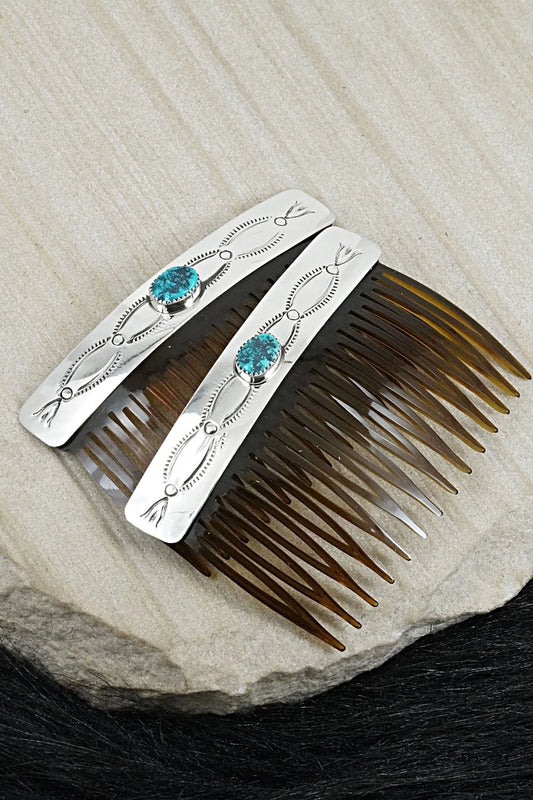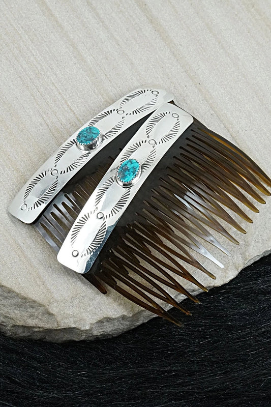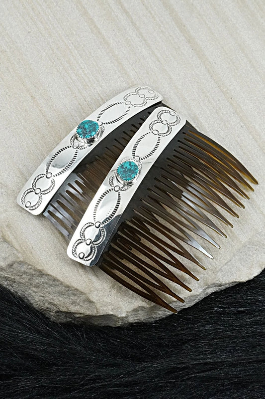 Turquoise & Sterling Silver Hair Combs - Jolene Begay