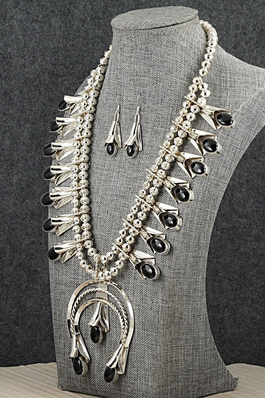 Onyx & Sterling Silver Squash Blossom Set - Louise Yazzie
