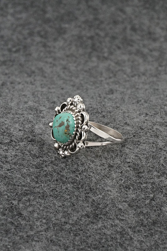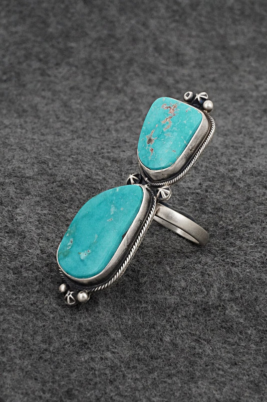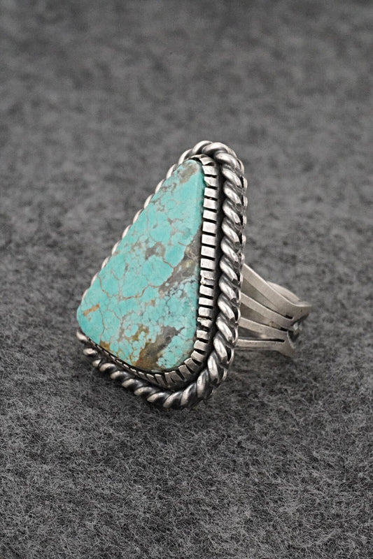 Turquoise & Sterling Silver Ring - Leslie Nez - Size 8 Adj.