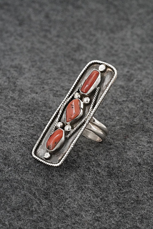 Coral & Sterling Silver Ring - Priscilla Reeder - Size 8