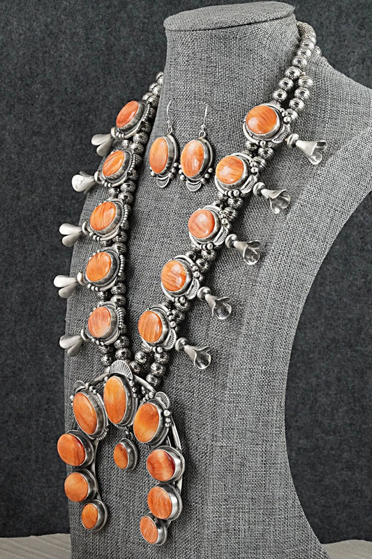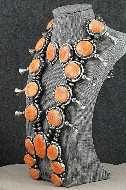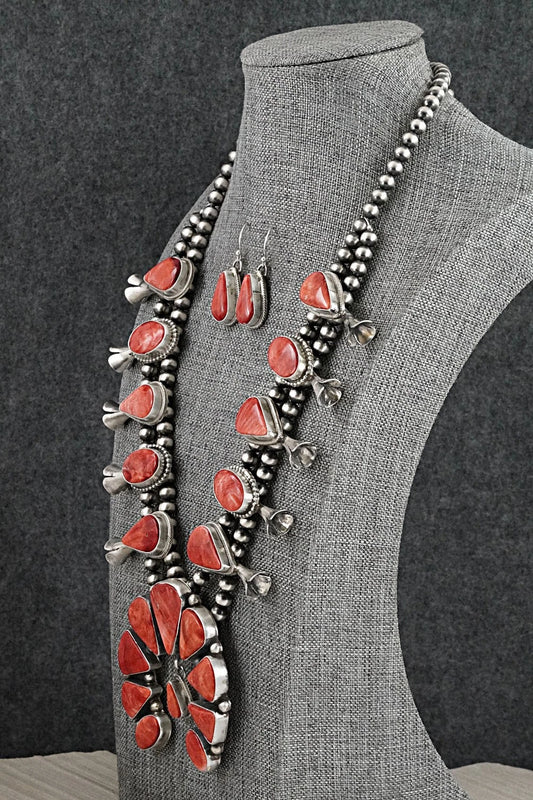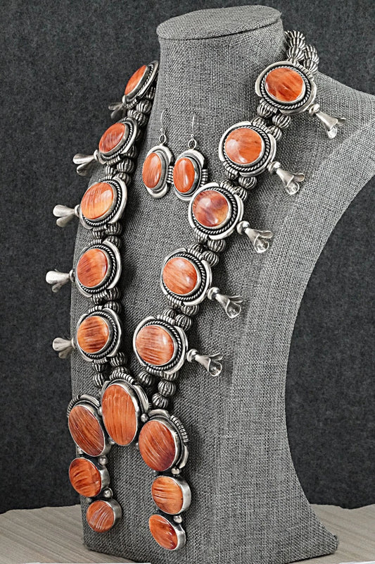 Spiny Oyster & Sterling Silver Squash Blossom Set - Paul Livingston