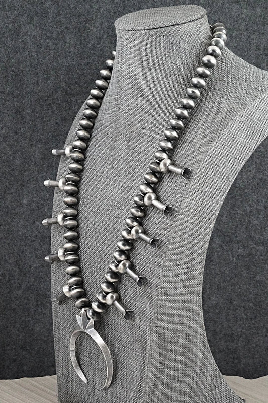 Sterling Silver Navajo Pearl Squash Blossom Necklace - Presley Haley
