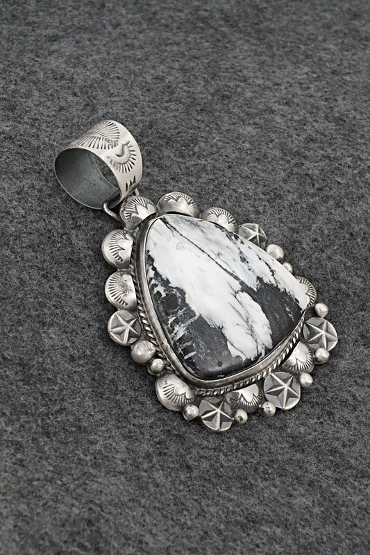 White Buffalo & Sterling Silver Pendant - Vernon Johnson
