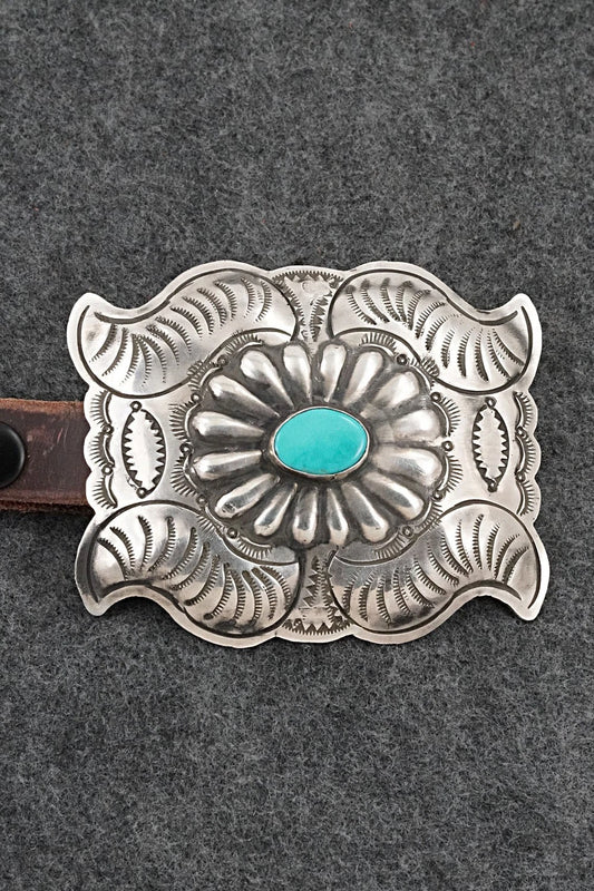 Turquoise, Sterling Silver & Leather Concho Belt - Marilyn Ramone