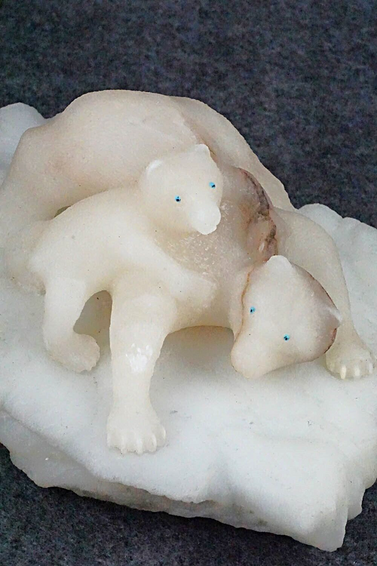 Polar Bear and Cub Zuni Fetish Carving - Travis Lasiloo