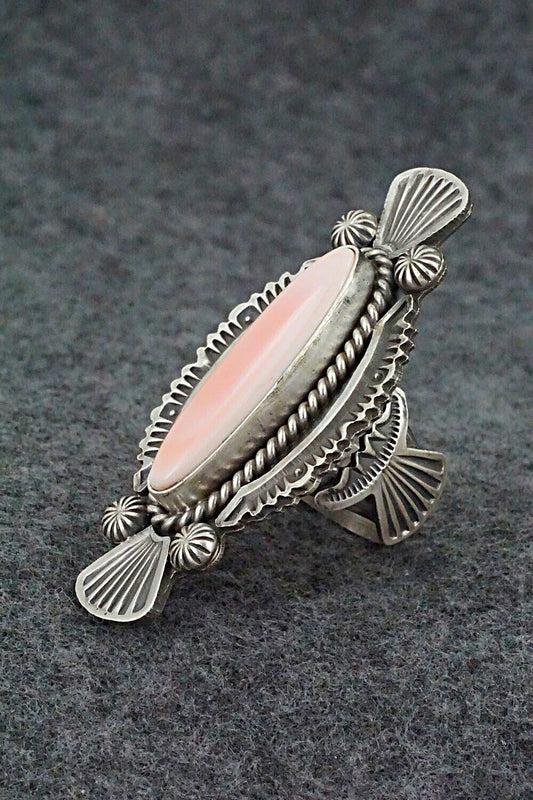 Pink Conch Shell & Sterling Silver Ring - Michael Calladitto - Size 10