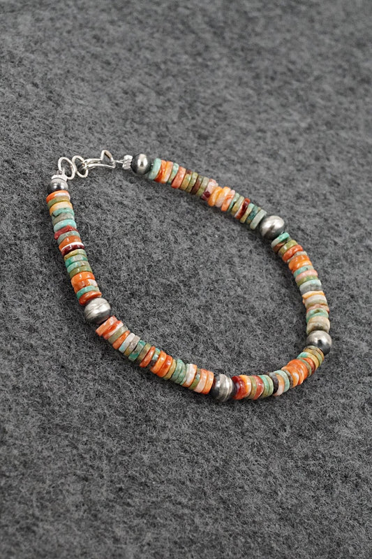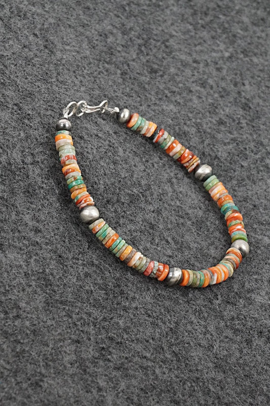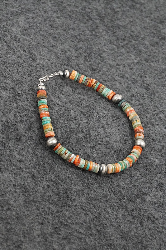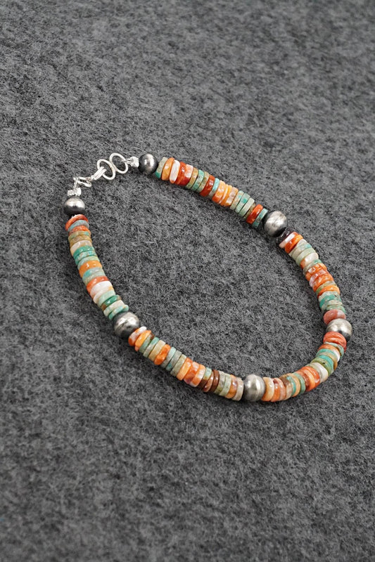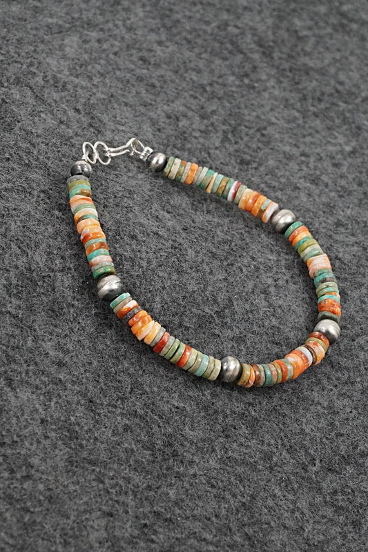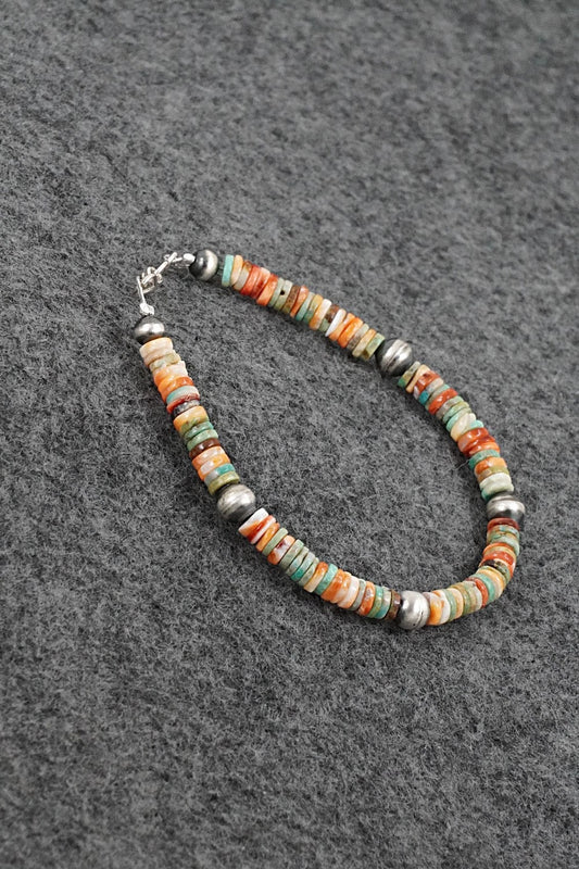 Turquoise, Spiny Oyster & Sterling Silver Bracelet - Doreen Jake