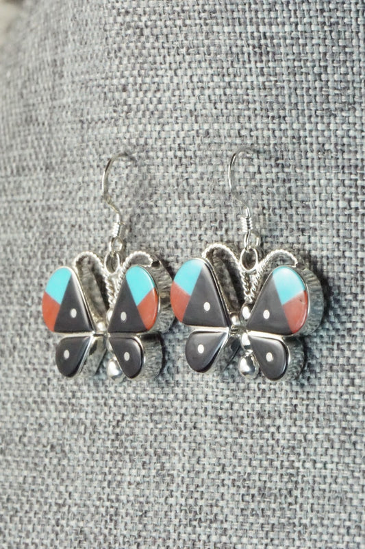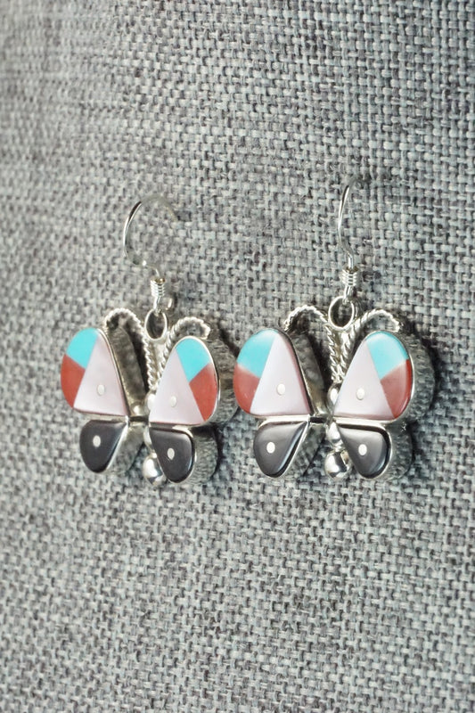 Multi Stone & Sterling Silver Inlay Earrings - Leavus Ahiyite