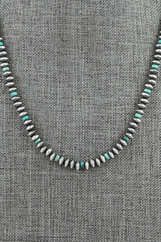 Turquoise & Sterling Silver Navajo Pearl Necklace 24" - Tonisha Haley