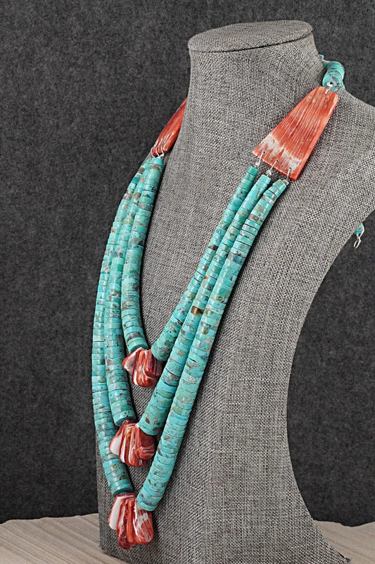 Turquoise, Spiny Oyster and Sterling Silver Necklace - Lupe Lovato