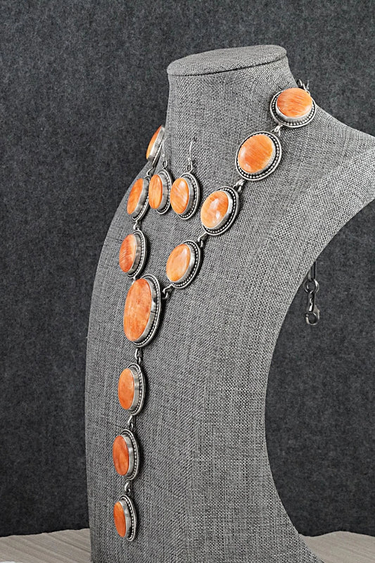 Spiny Oyster & Sterling Silver Necklace and Earrings Set - Kathleen Livingston