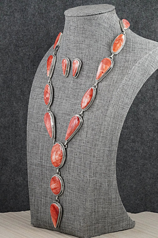 Spiny Oyster & Sterling Silver Necklace and Earrings Set - Paul Livingston