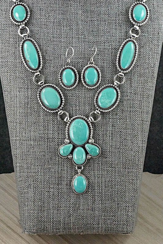 Turquoise & Sterling Silver Necklace and Earrings Set - Derrick Gordon