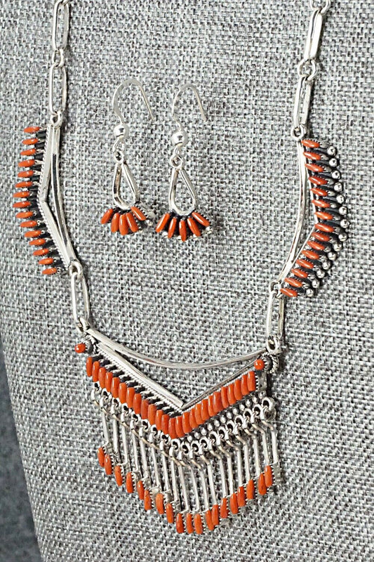 Coral & Sterling Silver Necklace and Earrings Set - Mildred Ukestine