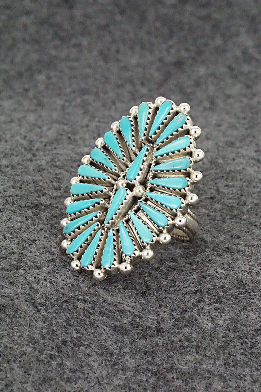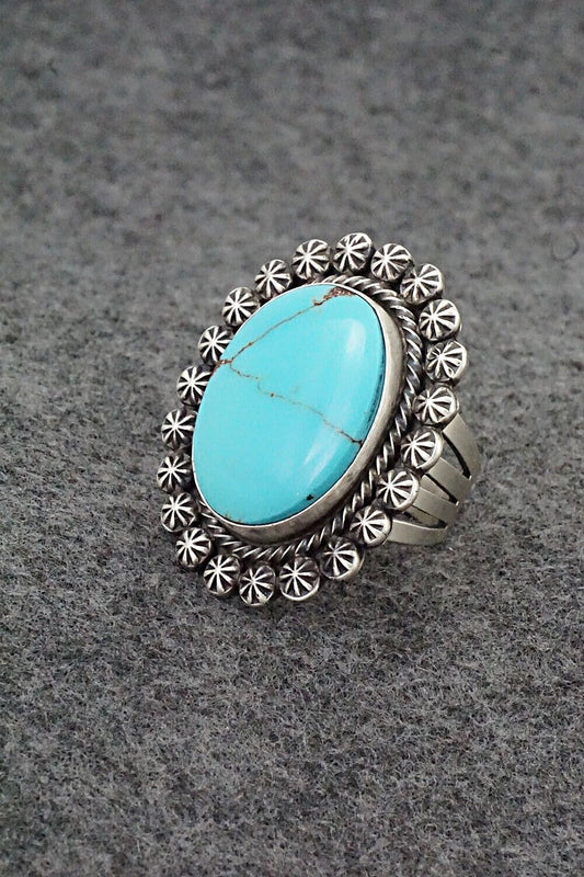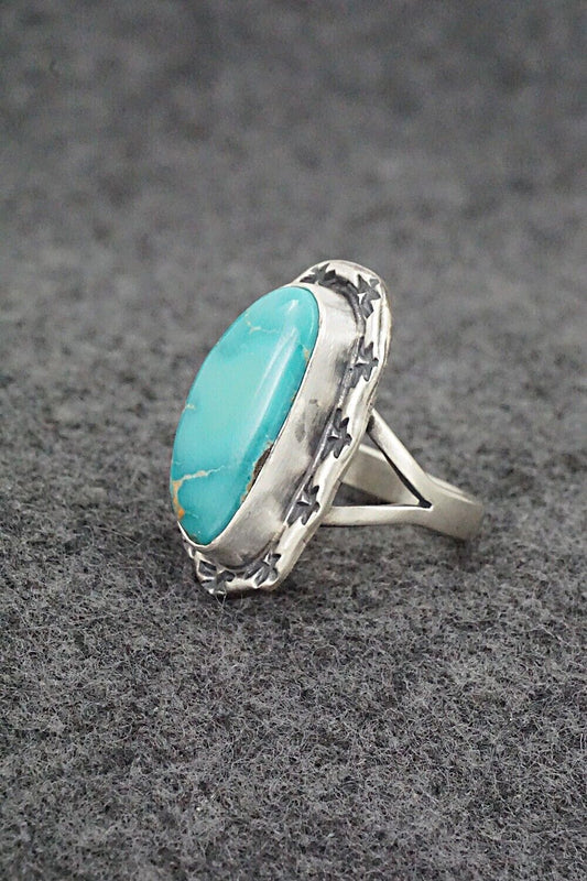 Turquoise & Sterling Silver Ring - Kenny Lonjose - Size 7.5