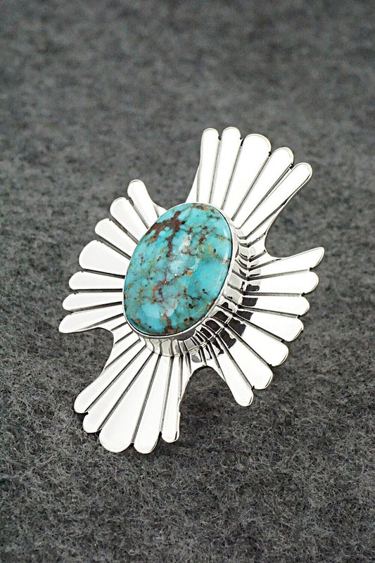 Turquoise & Sterling Silver Ring - Kenny Lonjose - Size 8.75
