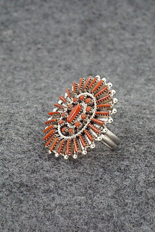 Coral & Sterling Silver Ring - Annette Chiquito - Size 8.5