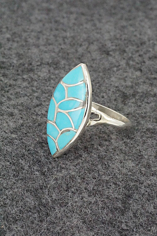 Turquoise & Sterling Silver Ring - Orena Leekya - Size 8.75