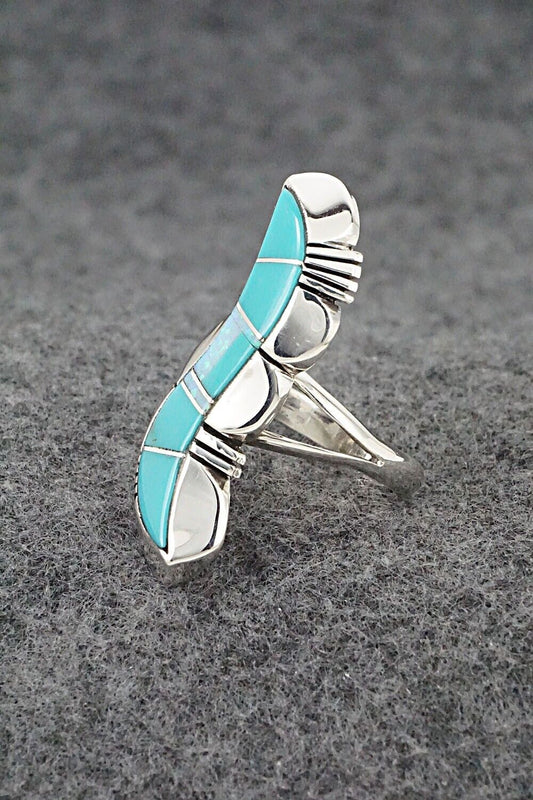 Turquoise, Opalite & Sterling Silver Inlay Ring - James Manygoats - Size 6