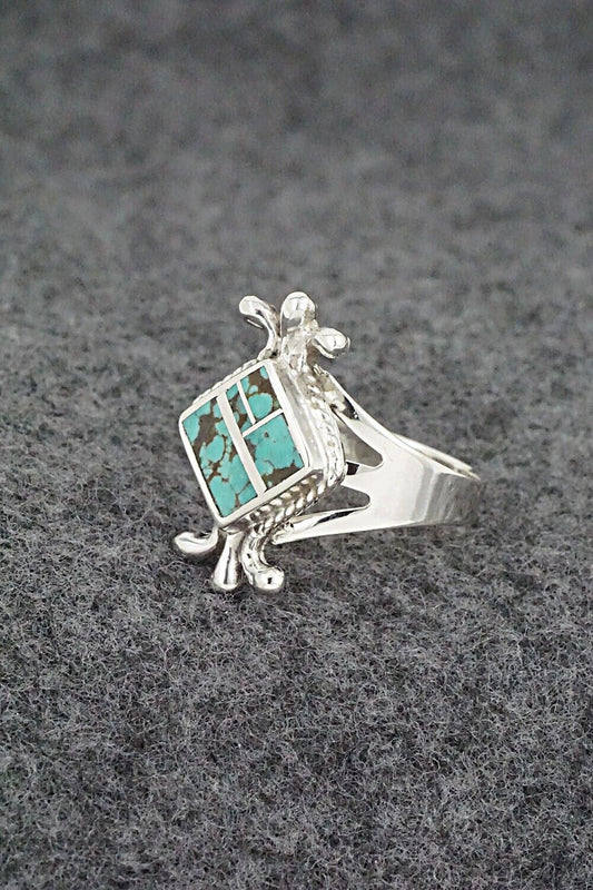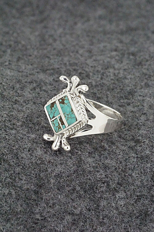 Turquoise & Sterling Silver Inlay Ring - James Manygoats - Size 8