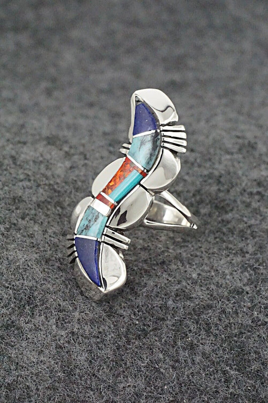 Multi-Stone & Sterling Silver Inlay Ring - James Manygoats - Size 5.5