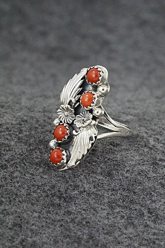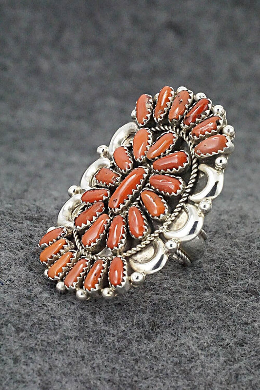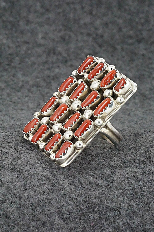 Coral and Sterling Silver Ring - Darlene Begay - Size 8.5