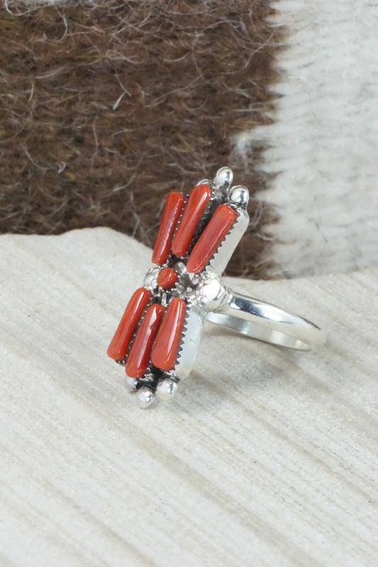 Coral & Sterling Silver Ring - Carlene Hattie - Size 5.75