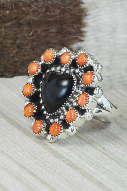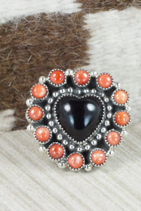 Onyx, Spiny Oyster & Sterling Silver Ring - Sandra Parkett - Size 7.5 (Adj.)