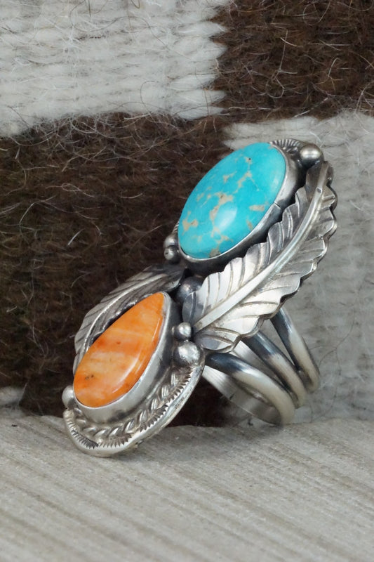 Turquoise, Spiny Oyster & Sterling Silver Ring - Betty Lee - Size 8.75