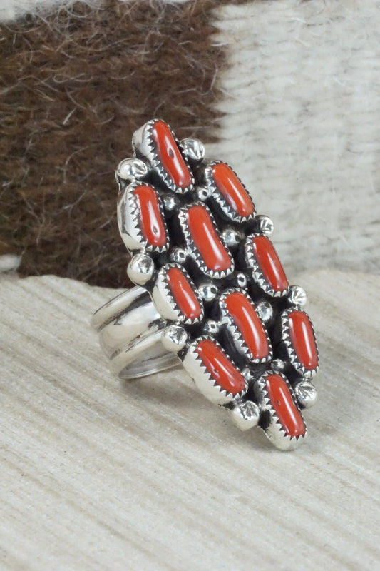 Coral & Sterling Silver Ring - Priscilla Reeder - Size 8.75