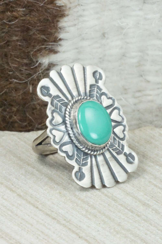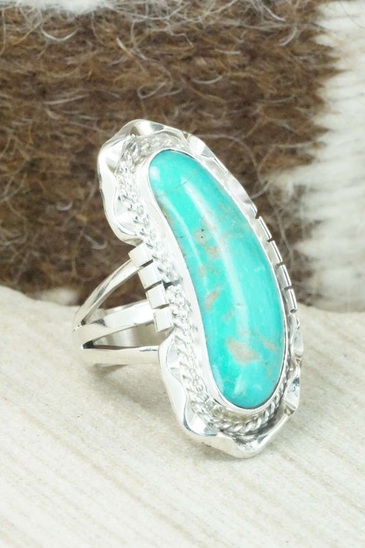 Turquoise & Sterling Silver Ring - Leslie Nez - Size 10