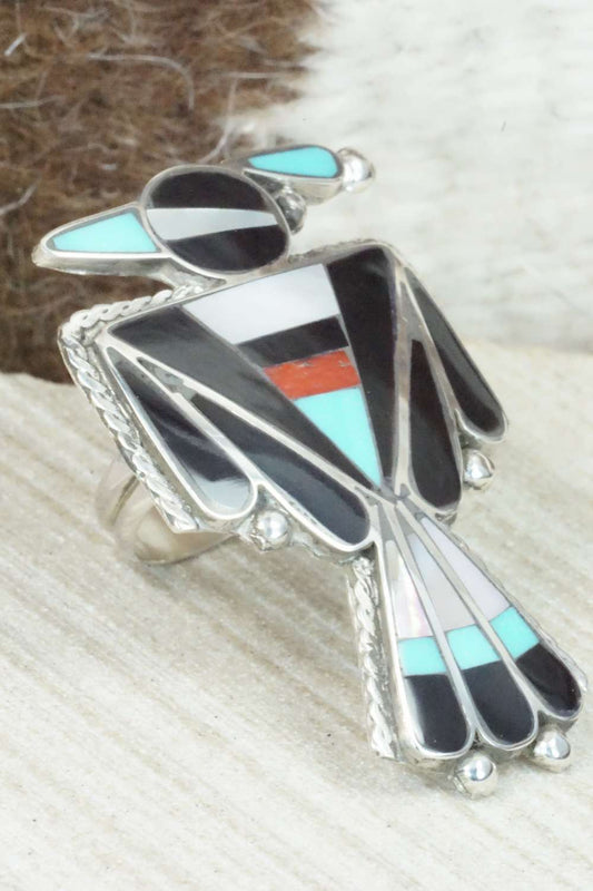 Multi Stone & Sterling Silver Inlay Ring - Delgar Cellicion - Size 5.5