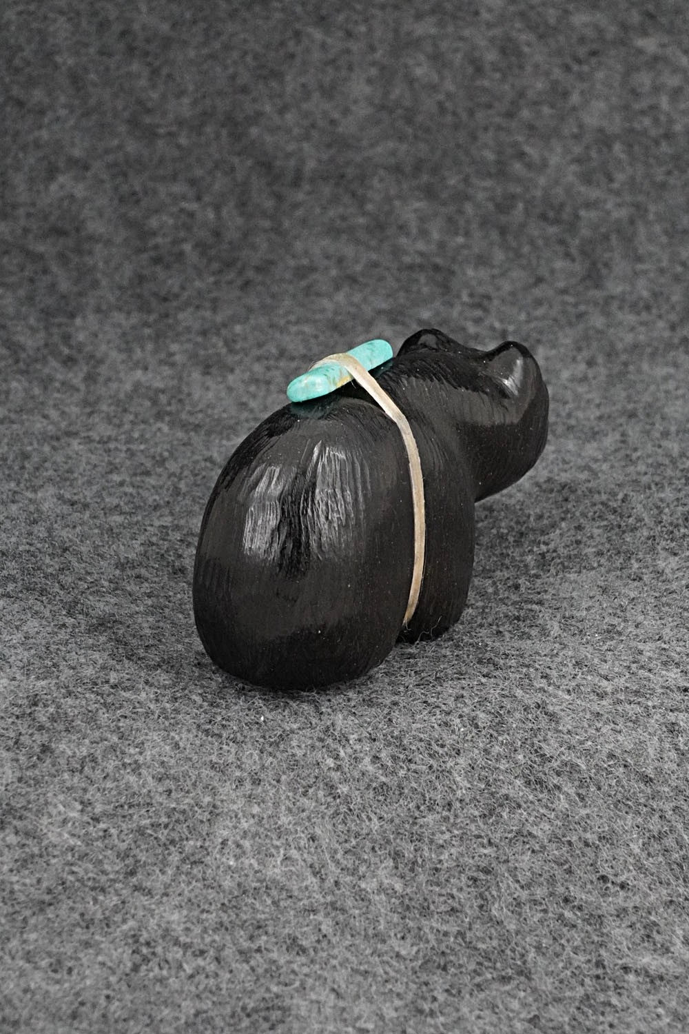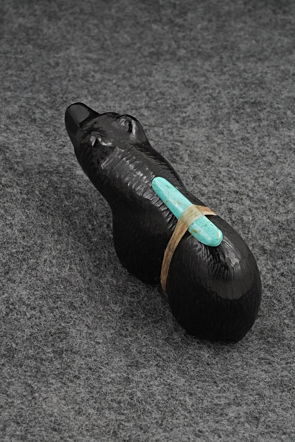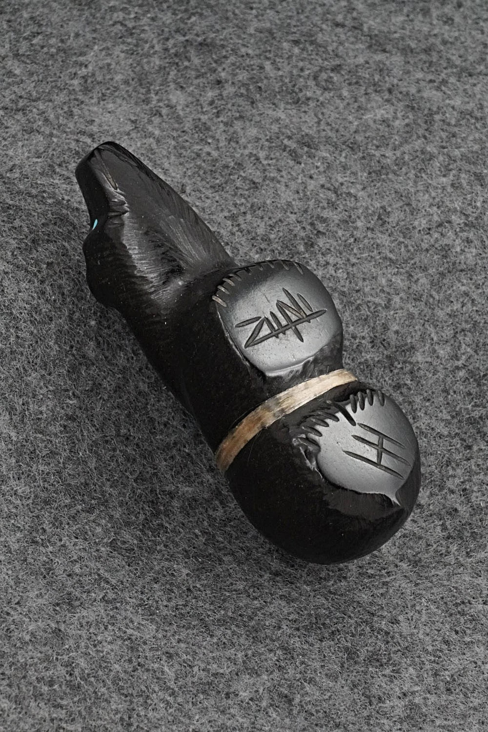 This bear Zuni fetish was carved by Herb Halate. The bottom is signed HH and Zuni.