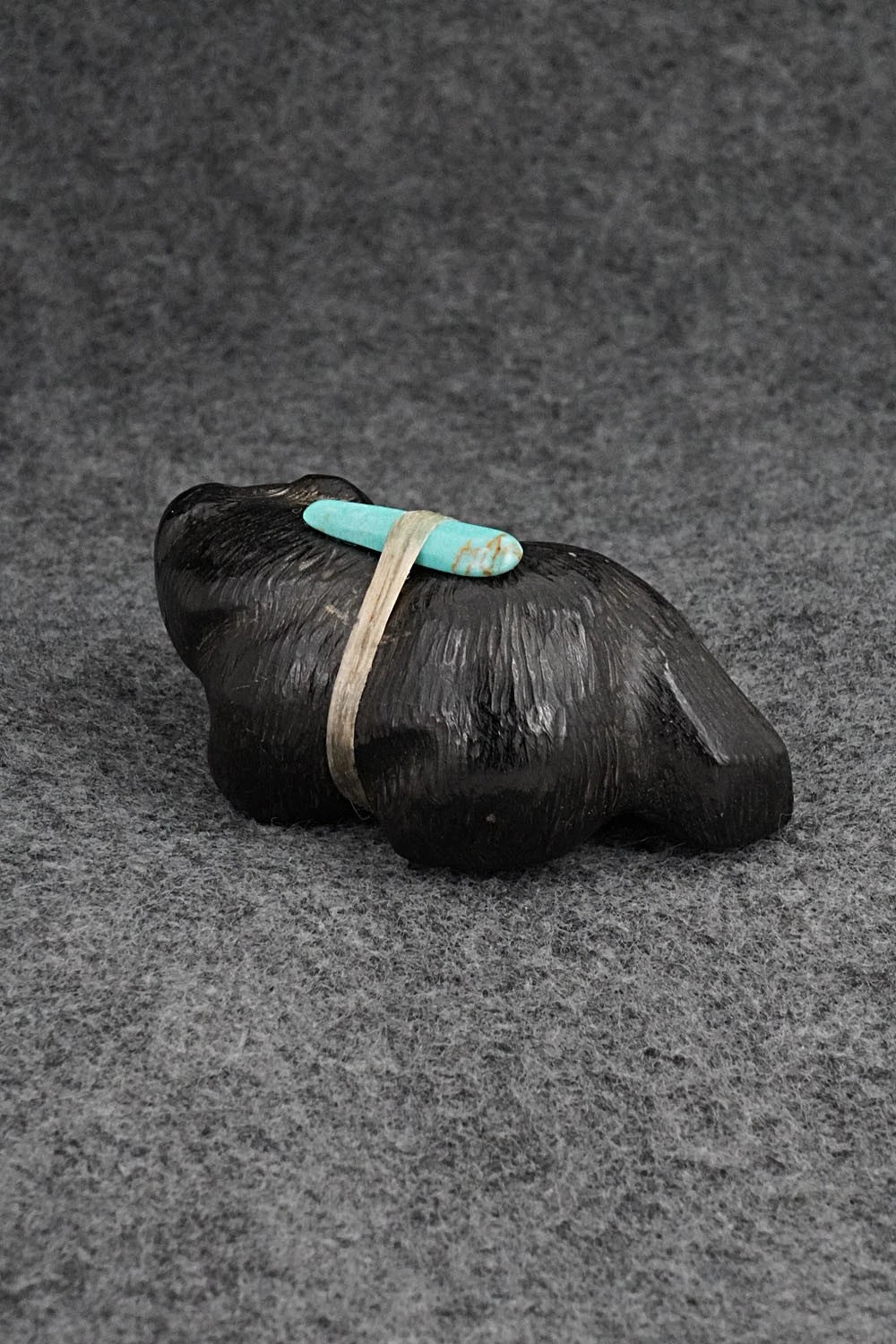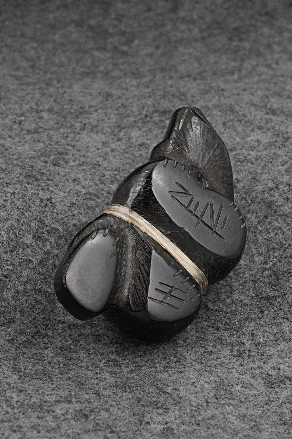 This bear Zuni fetish was carved by Herb Halate. The bottom is signed HH and Zuni.