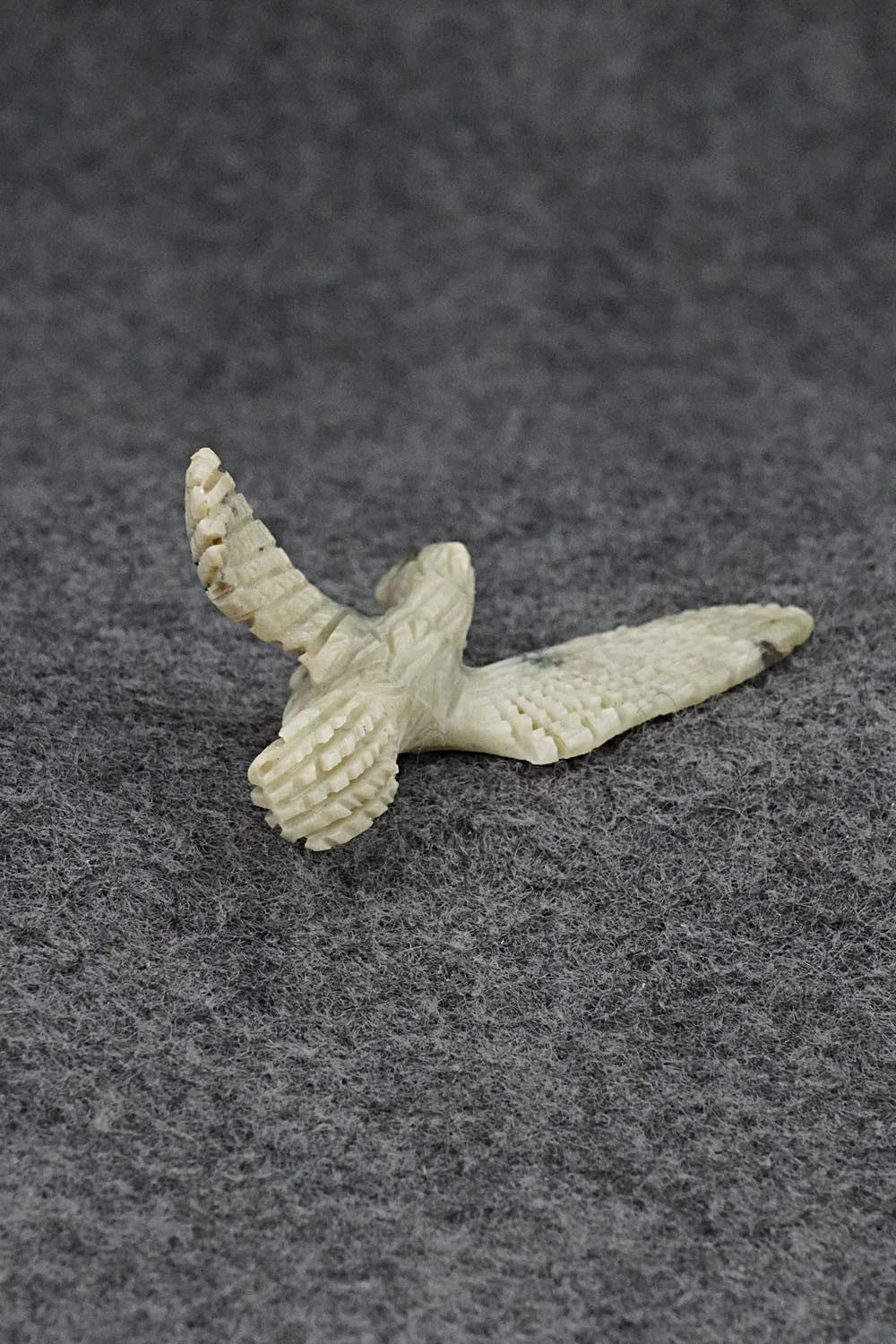This eagle Zuni fetish was carved by Cody Cheama. The bottom is signed.